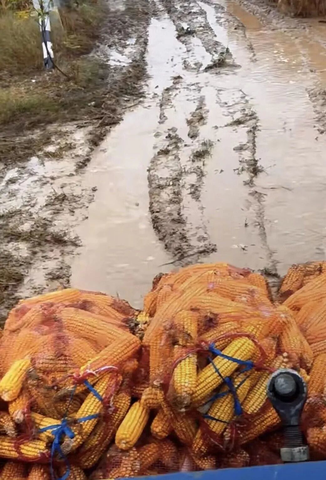 不仅是包地户在泥里发愁,小农户也在苦撑。河南商丘永城市有农户对中国新闻周刊说,收割机进不去地,父母花了五天时间,从天亮忙到夜里11点,终于在10月5日徒手掰完了7亩玉米,“全是用盆在水里划着运出来的”。