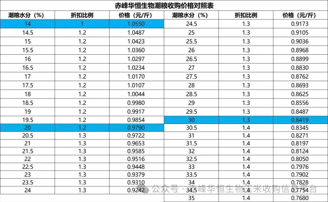 赤峰华恒合成生物有限公司自2025年10月23日早8:00起调整2025年产新季玉米收购价格,具体信息如下: