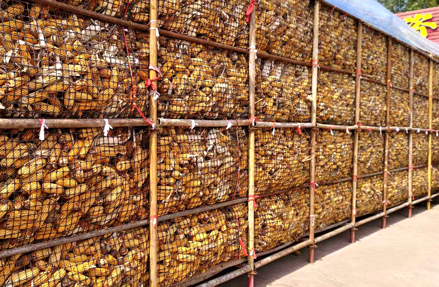 今年秋收季,河南已累计安排5000万元资金,用于秋粮收获和烘干机械奖补。在加大烘干力度的基础上,河南正推广应用铁丝笼储粮,解决玉米晾晒难题。