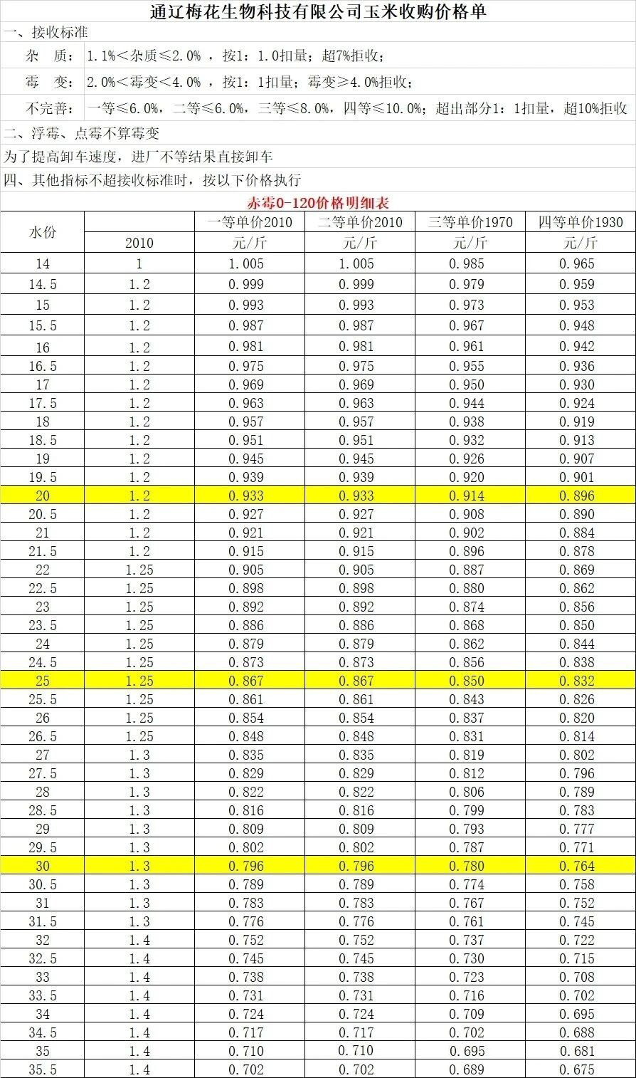 2025年10月28日早5:00起,通辽梅花生物科技有限公司玉米收购执行如下: