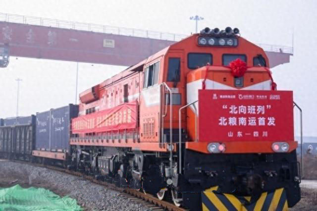 2026年1月5日10时58分,一列载有72标准箱小麦的山东—四川北粮南运“北向班列”从济南铁路物流中心管内沙土集物流园缓缓驶出,开往四川成都,标志着鲁川两省之间一条高效、绿色、稳定的粮食运输新通道正式贯通。