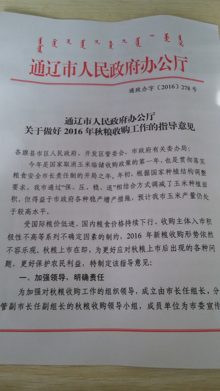 通辽市人民政府办公厅文件