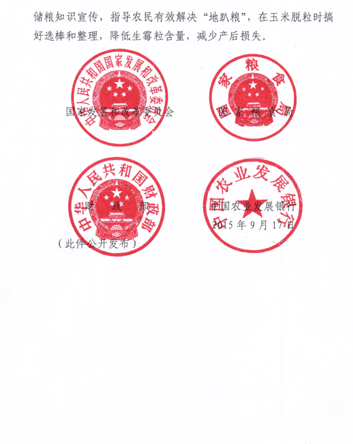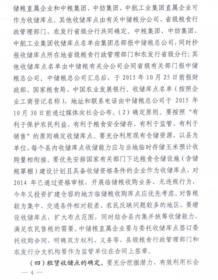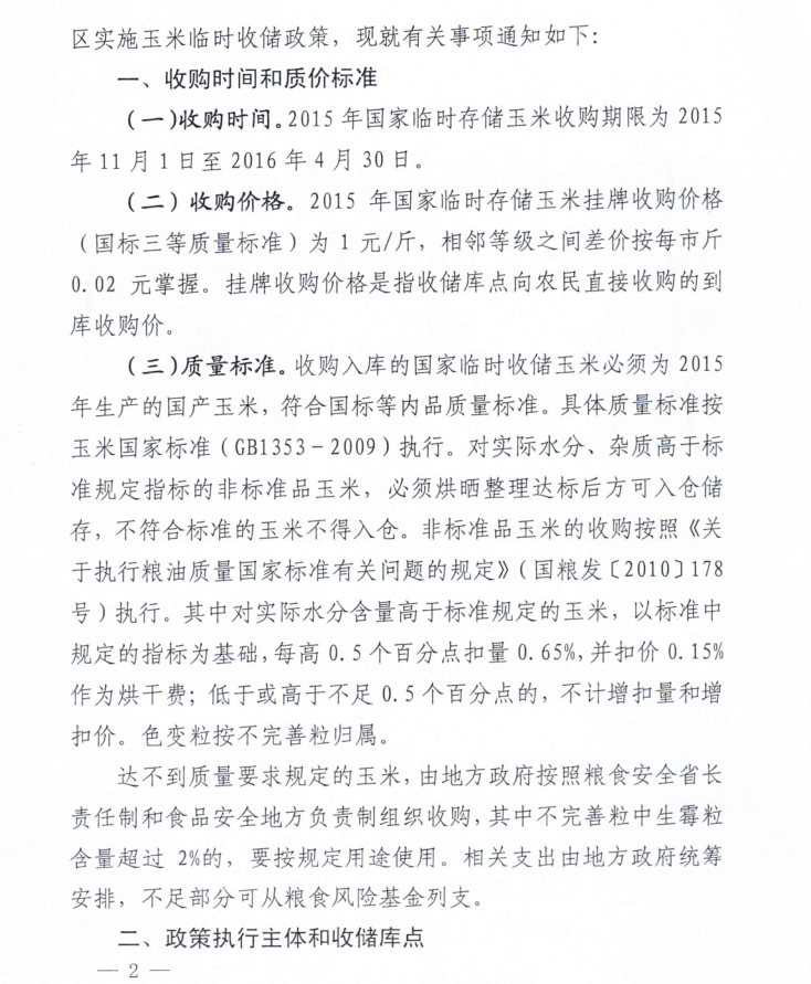 关于2015年东北地区国家临时存储玉米收购有关问题的通知