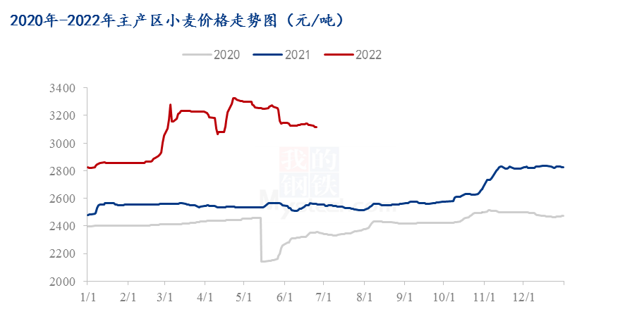 今年的小麦不管是从质量还是产量来说都远超于往年,再加上年后这段时间小麦价格飞涨,使各持粮主体惜售情绪较强,不少种粮大户将自家质量好的小麦囤起,打算9月份或者年底再出手。所以在新麦上市的这段时间里,市场粮源流通较往年来说整体是偏慢的。这一点从制粉企业收购价格也可以看出来,从安徽、江苏新麦上市后,随着新麦上量的增加,企业收购价格也是呈现偏强走势的,都为了把价格提的高一点,吸引粮源来补充紧缺的原粮库存。