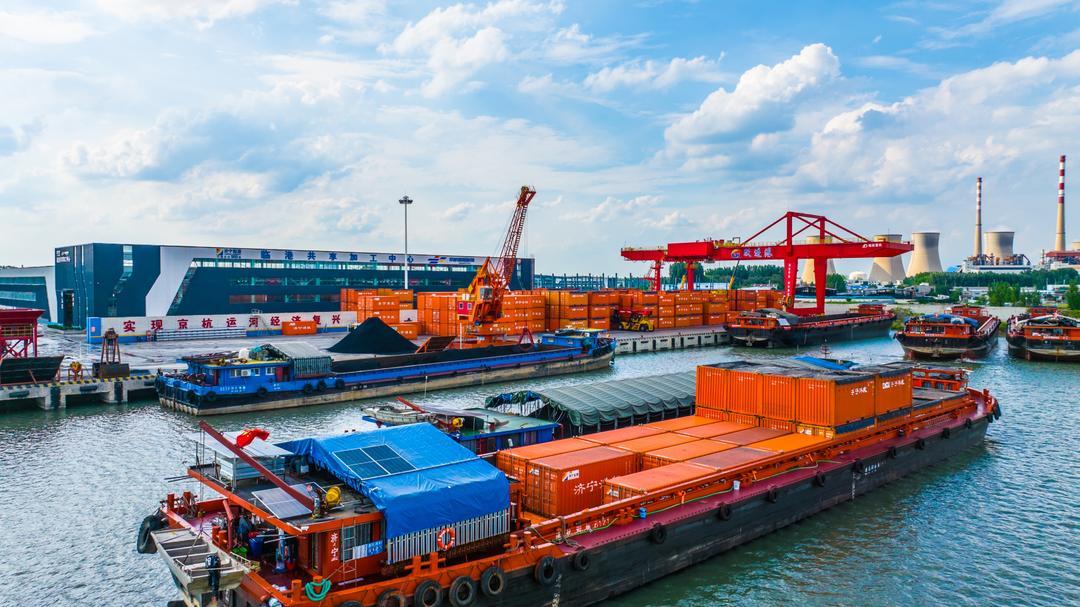 在这座由济宁港、春江港务、江北现代粮食物流园组成的“两港一园”产业园内,看不到工人肩扛手搬的繁忙景象,取而代之的是传感器实时监测粮仓储量、机械臂精准调控输送速度的智能化场景⋯⋯2600吨原产自济宁市兖州区的优质小麦,正以高效有序的节奏完成“登船”,并将沿京杭运河历经15-19天航程南下抵达镇江港,再经长江航道转运至南方多地,运河“北粮南运”新通路已初具雏形。