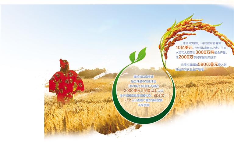 俄乌冲突和新冠肺炎疫情使非洲国家清楚意识到“粮食安全必须在自己土地上解决”的硬道理。非盟轮值主席、塞内加尔总统萨勒表示,(非洲)有必要通过对农业和农产品加工的大规模投资,尽快赢得这场争夺粮食主权的战斗。非洲开发银行3月底宣布将募集10亿美元应对当前可能出现的粮食危机,计划迅速增加小麦、玉米、水稻和大豆等约3000万吨粮食产量,让2000万农民掌握相关技术。据悉,非盟还打算另外增加580亿美元投入到其他不同农业生产领域。