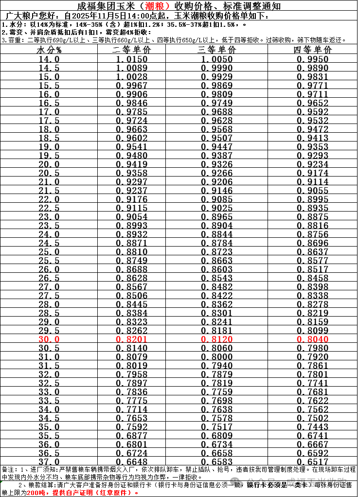11月6日肇东成福玉米潮粮收购报价