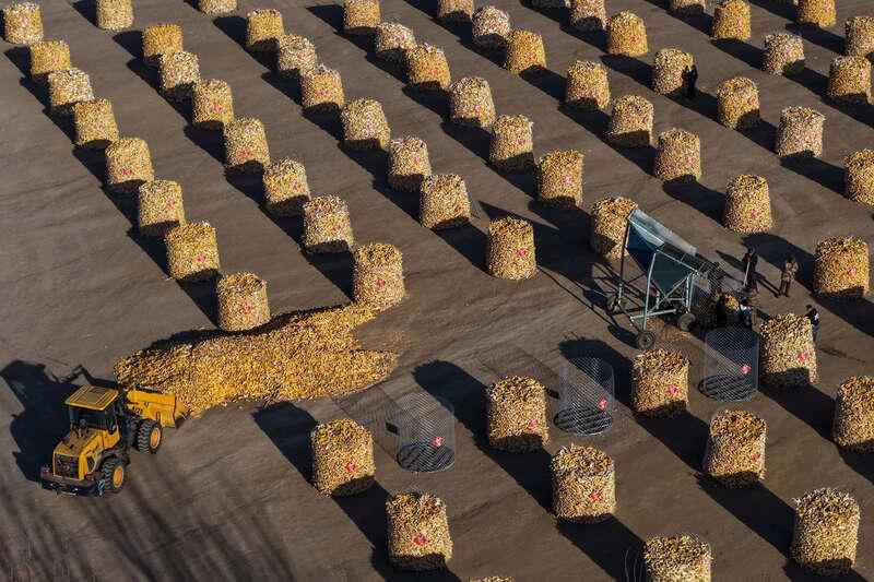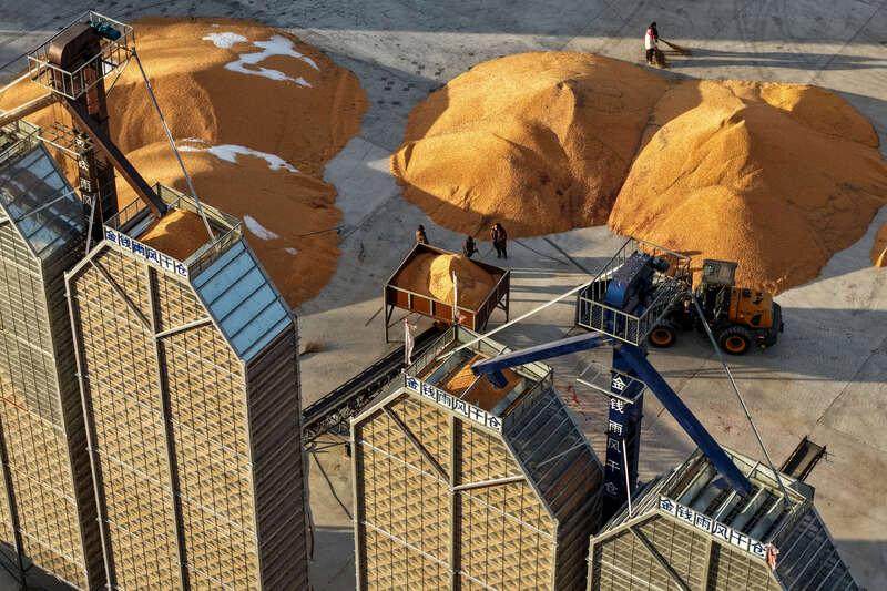 兴安盟扎赉特旗好力保镇申丰农牧合作社,农民正将玉米收储到风干仓内。
