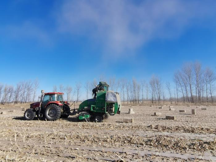初冬的科尔沁大地,寒意渐浓,田野上已不见金黄的玉米,取而代之的是忙碌的秸秆打捆机和检修中的农用机械。在通辽市科尔沁区敖力布皋镇东喜伯营子村,种植户李永恒盯着打捆机工作,玉米秸秆被打成草捆,等待养殖场收购。
