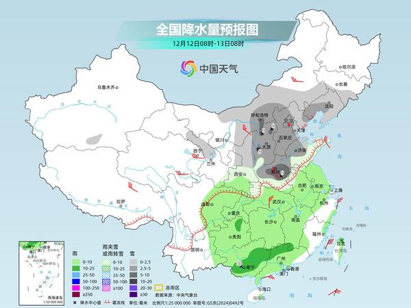 在这次寒潮过程中,由于水汽条件较好,我国将出现大范围的雨雪天气,这将是立冬以来最大规模的雨雪天气。预计今起至13日,新疆、西北地区、华北、黄淮中北部、内蒙古中部及东北地区中南部等地有小到中雪或雨夹雪,部分地区有大雪,新增积雪深度2至8厘米,局地可达10至15厘米;四川盆地、江汉、黄淮南部及其以南地区有小到中雨,局地大雨。