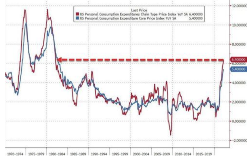 一系列制裁下,全球供应链愈发紧张,全球大宗商品仍面临较大的上涨压力,这无疑将继续加剧欧洲、美国的通货膨胀压力。此前公布的美国2月核心PCE物价指数年率(美联储最为关注的通胀指标)录得5.4%,刷新1983年以来新高;另外,美国2月PCE物价指数年率录得6.4%,自1982年以来的最高水平。