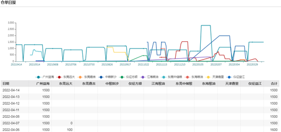 截至4月14日收盘,棕榈油2209合约基差+2202,2205合约和2209合约价差+1472棕榈油不同月份合约价格维持近强远弱格局。期货库存仓单1500张,周内没有变化。