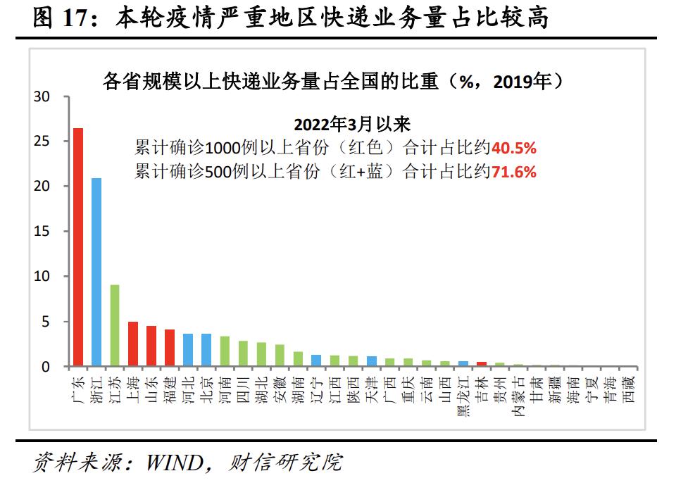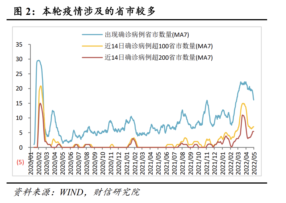 综上,本轮疫情除涉及范围略小于2020年初疫情外,感染人数和持续时长均远远超过2020年初,表明疫情的严重程度和防控难度均有所加大。但随着对疫情了解的加深,加上疫苗接种和疫情防控水平提高,短期内本轮疫情对经济的直接冲击仍较2020年初要小很多,中长期影响则取决于未来疫情演变形势。若重点城市迟迟无法有效控制疫情,导致供应链、产业链和人员流动持续受阻,则对经济的冲击仍不容小觑。