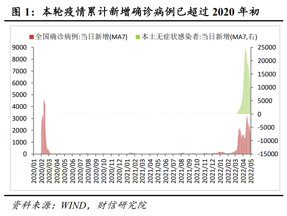 从感染人数看,截至5月4日,3月份以来国内累计确诊病例和本土无症状感染者分别达到10.9万和62.7万人,已远远超过2020年一季度的8万人左右(见图1),且目前国内每日确诊病例+本土无症状感染者依旧在5000例左右,预计感染总人数还将进一步增加,疫情形势总体依旧严峻。
