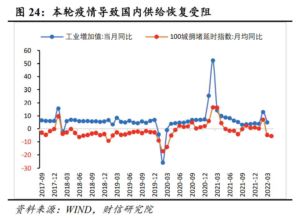 4、生产层面:疫情导致汽车等中下游行业生产回落,并减缓供给恢复速度