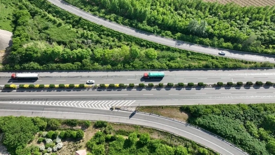 运输进京物资的货车正在高速上行驶。河北省交通运输厅供图