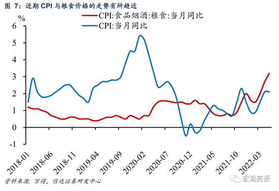 “油粮猪”共振,下半年CPI大概率破3。粮食价格向CPI的传导有两种途径,一是粮食价格上涨可以直接拉动CPI,粮食在CPI中的权重在2%左右,按此权重计算今年5月粮价上涨对 CPI的直接拉动在0.06%左右;二是生猪养殖成本中饲料成本占到了60%-70%,粮食可以通过抬高养猪成本从而推升猪肉价格。4月以来猪肉价格企稳回升,一定程度上与豆粕、玉米等粮食价格的持续上涨有关。我们预计,下半年 “油粮猪”共振将推升CPI同比读数,CPI大概率破3。
