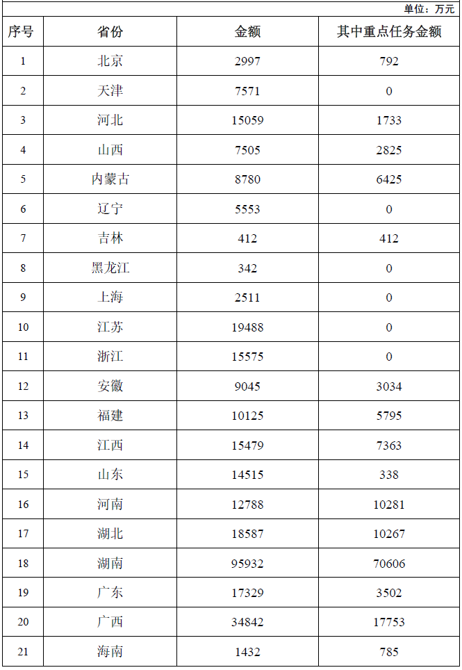 一、各省安排金额见附件,项目代码:Z135060000007,支出列2022年政府收支分类科目“211 节能环保支出”。