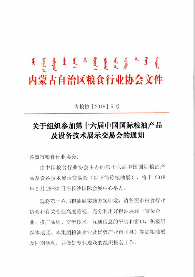 关于组织参加第十六届中国国际粮油产品及设备技术展示交易会的通知