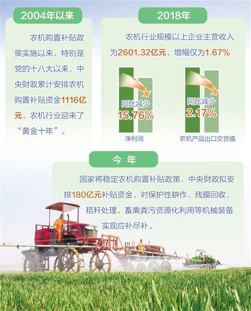 今年,国家将稳定农机购置补贴政策,中央财政拟安排180亿元补贴资金,对保护性耕作、残膜回收、秸秆处理、畜禽粪污资源化利用等机械装备实现应补尽补。这意味着农机购置补贴未来将充分发挥对农业绿色发展的支撑作用。